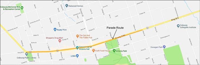 There will be no parking on King Street on November 29th, beginning at 3pm in order to prepare for the parade. The parade route begins at William Street and King Street, by the Cobourg Library and continues East along King Street.