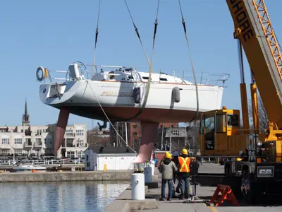Outdoor winter storage is available from fall haul-out through spring launch. Our experienced team ensures careful handling during haul-out, blocking, and launch procedures.