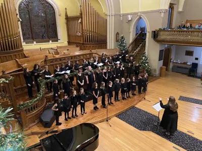 Take in the beauty of the season with performances by three youth choirs, a charming festive skit from the musical theatre group, and special musical guests on handbells, violin, cello, and drum—all showcased in the church’s warm, resonant acoustics.