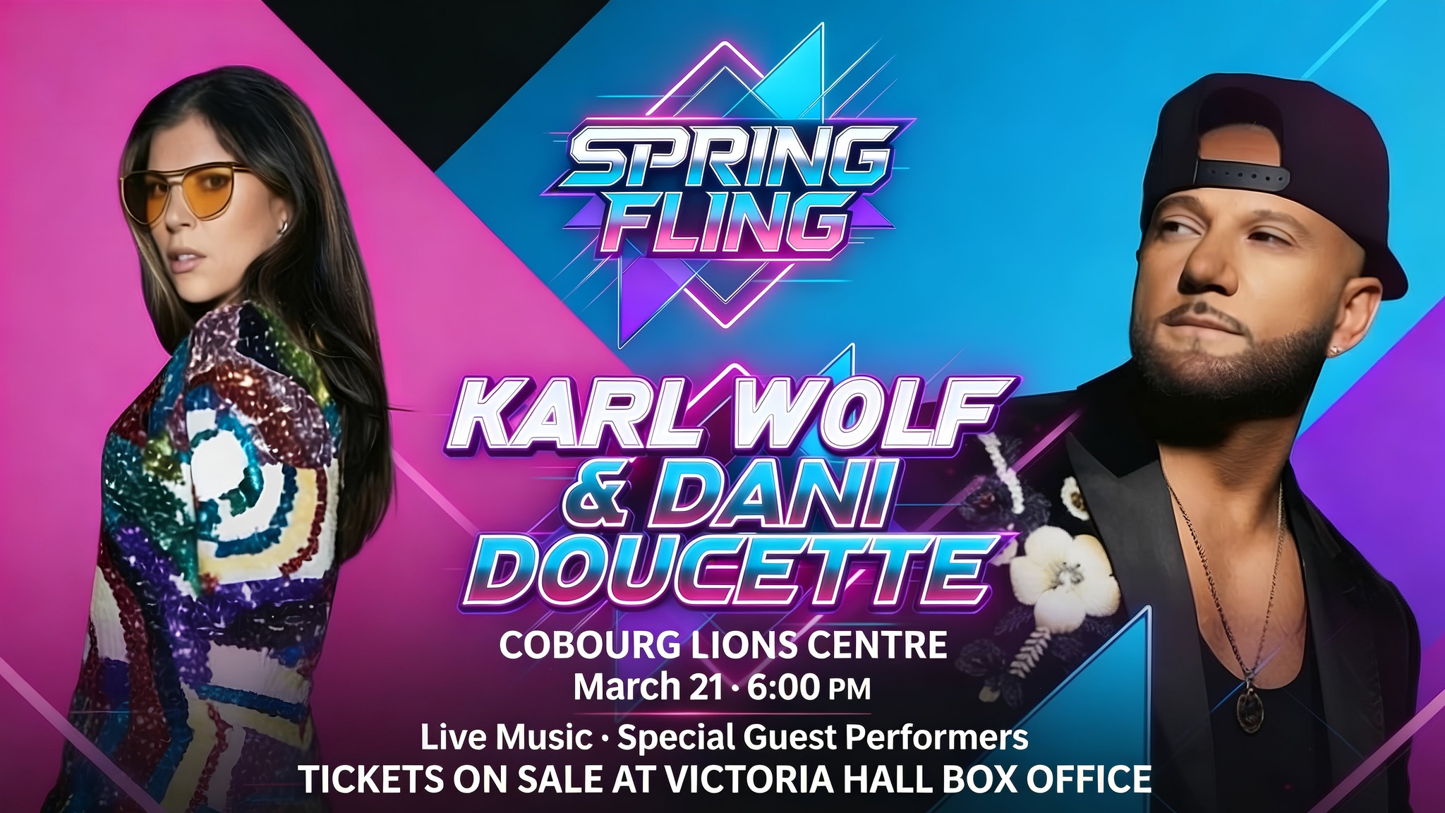An electrifying spring celebration featuring Karl Wolf and Dani Doucette. Expect a high-energy night that will have everyone on their feet. Spring Fling is a Cobourg’s must-attend spring concert high-energy night of live music, connection, and community. This one-night-only event brings people together to celebrate music, positivity, and the power of showing up for something that matters. Live Performances by: Karl Wolf — whose music and sound have gone viral on TikTok with an incredible 7.9 BILLION views, making him one of the most recognizable voices across social media today. Dani Doucette — delivering powerful vocals and feel-good energy that lights up every room. Spring Fling blends big-artist energy with a welcoming local vibe you won’t find anywhere else. This is not just a concert...it’s the kind of night people talk about after it’s over.