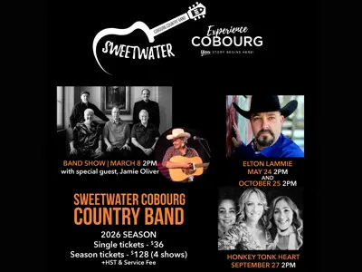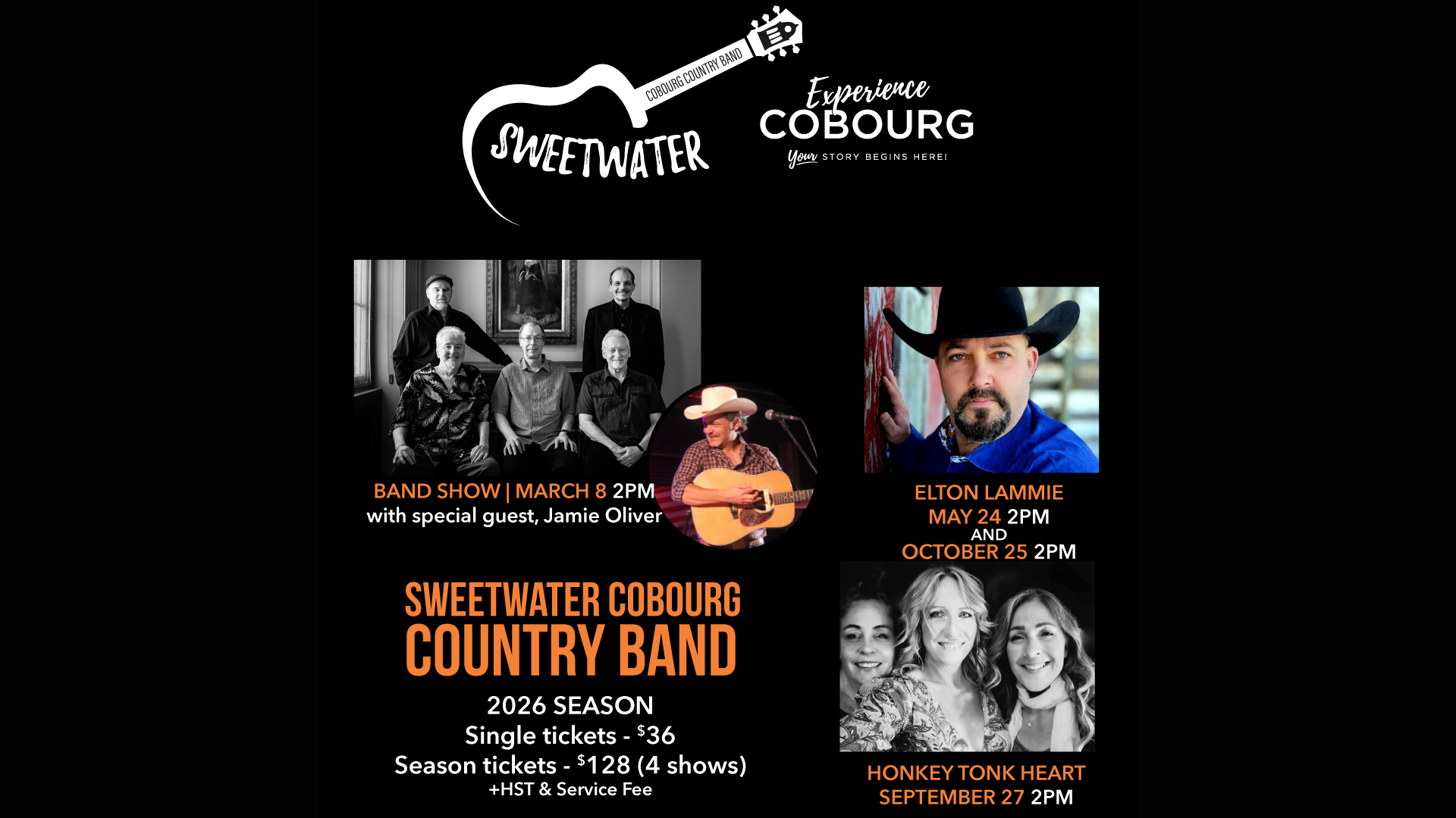 Experience the very best in classic country music with the Sweet Water Country Music Series. Hosted at the beautiful Concert Hall at Victoria Hall, this celebrated series showcases some of Canada’s most respected touring musicians in an unforgettable live setting. With rich harmonies, exceptional musicianship, and an authentic, true-to-the-roots country sound, Sweet Water captures the heart of country’s golden era while delivering the energy and warmth of live performance.